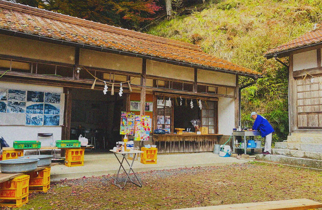 神社の前まで行くと、ボランティアで神社を管理されている町の方に案内され、コーヒーをいただきました。肌寒いくらいの外で飲むコーヒーは美味しくて格別でした。