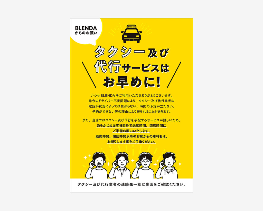 「タクシーは早めにお呼びください」というメッセージがひと目で伝わるよう、
