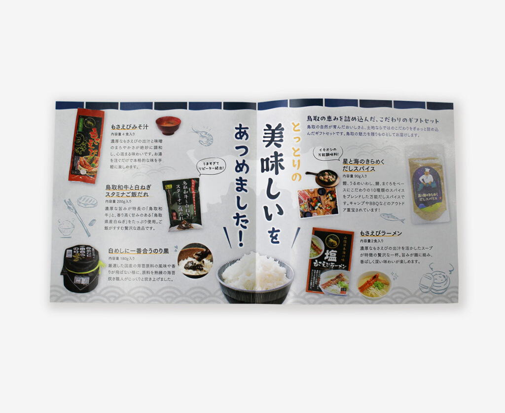 鳥取の「おいしい」を詰め込んだギフトセット紹介フライヤーをデザインしました。